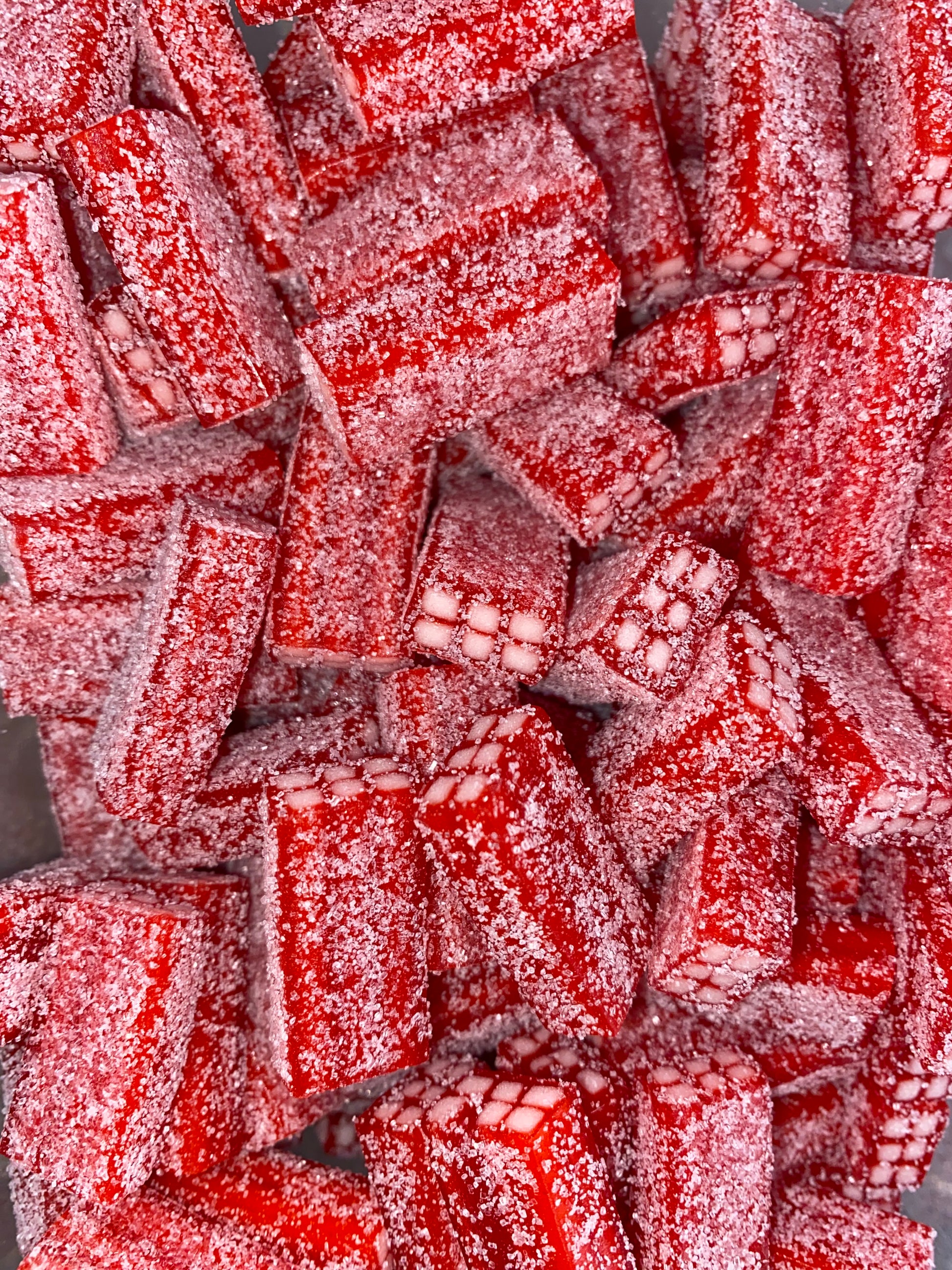 Ingrédients: Sucre, sirop de glucose fructose farine de blé ,eau,emulsifiants E471 acidifiant:E330 E296 graisse végétale (coco),arome, conservateur E202, correcteur d'acidité E350.