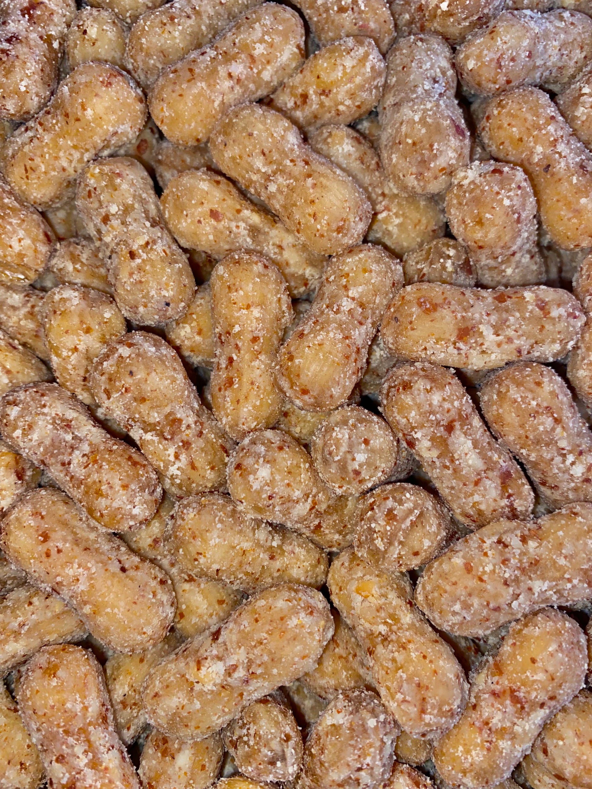 Ingrédients : Sucre, Sirop de glucose, arachides 13%, amidon transformé de blé. sans colorants.