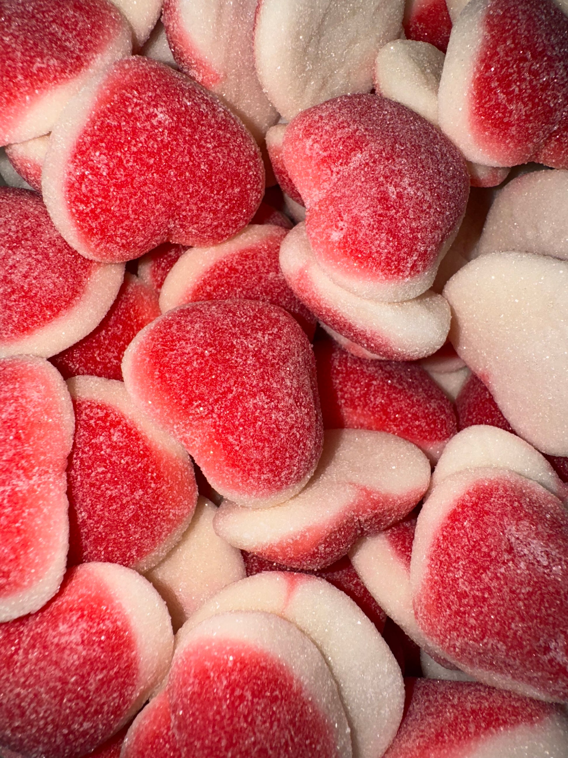 Sucre, sirop de glucose, eau, amido de pomme de terre modifié, gélatine, acidifiants : E330, E296, E270, arômes, amido di mais. colorants.