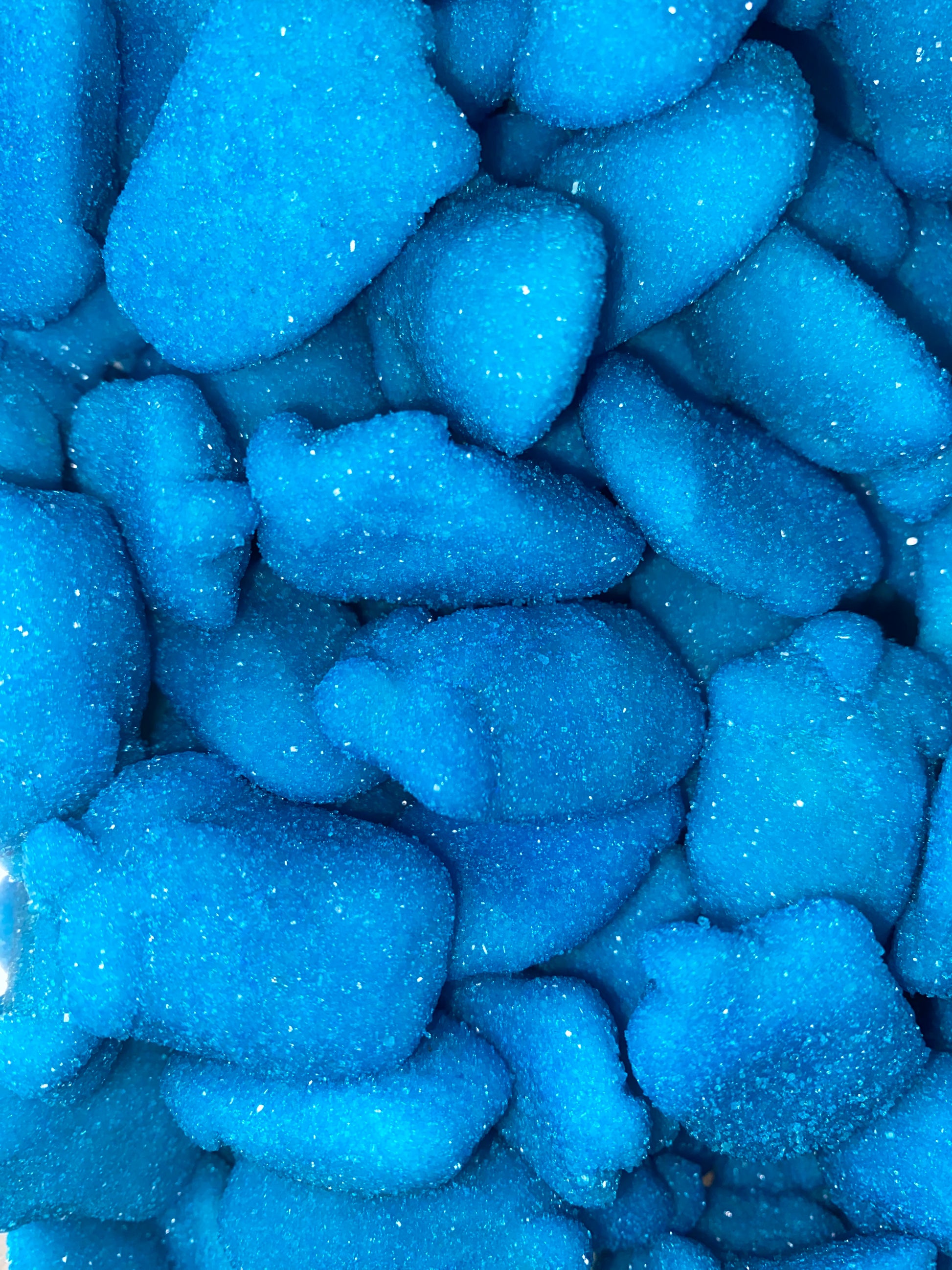 Ingrédients : Sirop de glucose, sucre, eau, gélatine de boeuf, amidon modifié de pomme de terre, acidifiants : E330, E270, pectine, arômes, colorant : E133.