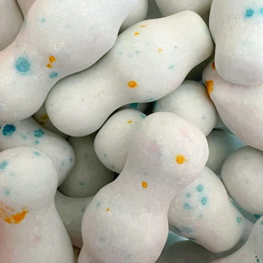 Ingrédients : Dextrose, sucre, gomme base, sirop de glucose, acide citrique, arômes, colorants : E120, E133, E141, agent d'enrobage : gomme laque, antioxydant E321, Bubble gum.