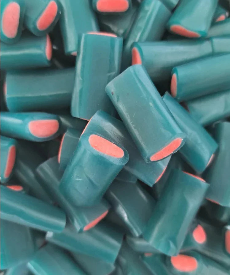 Ingrédients : sirop de glucose-fructose, sucre, farine de blé, amidon, huile et graisse végétale (palme), eau, acidifiant (e330), amidon de pomme de terre, sirop de sorbitol, gélatine de boeuf halal, arômes, antioxydant (E331iii), émulsifiant (E471), colorants (E171, E133, E129), agents d'enrobage, huile végétale (palme et noix de coco).