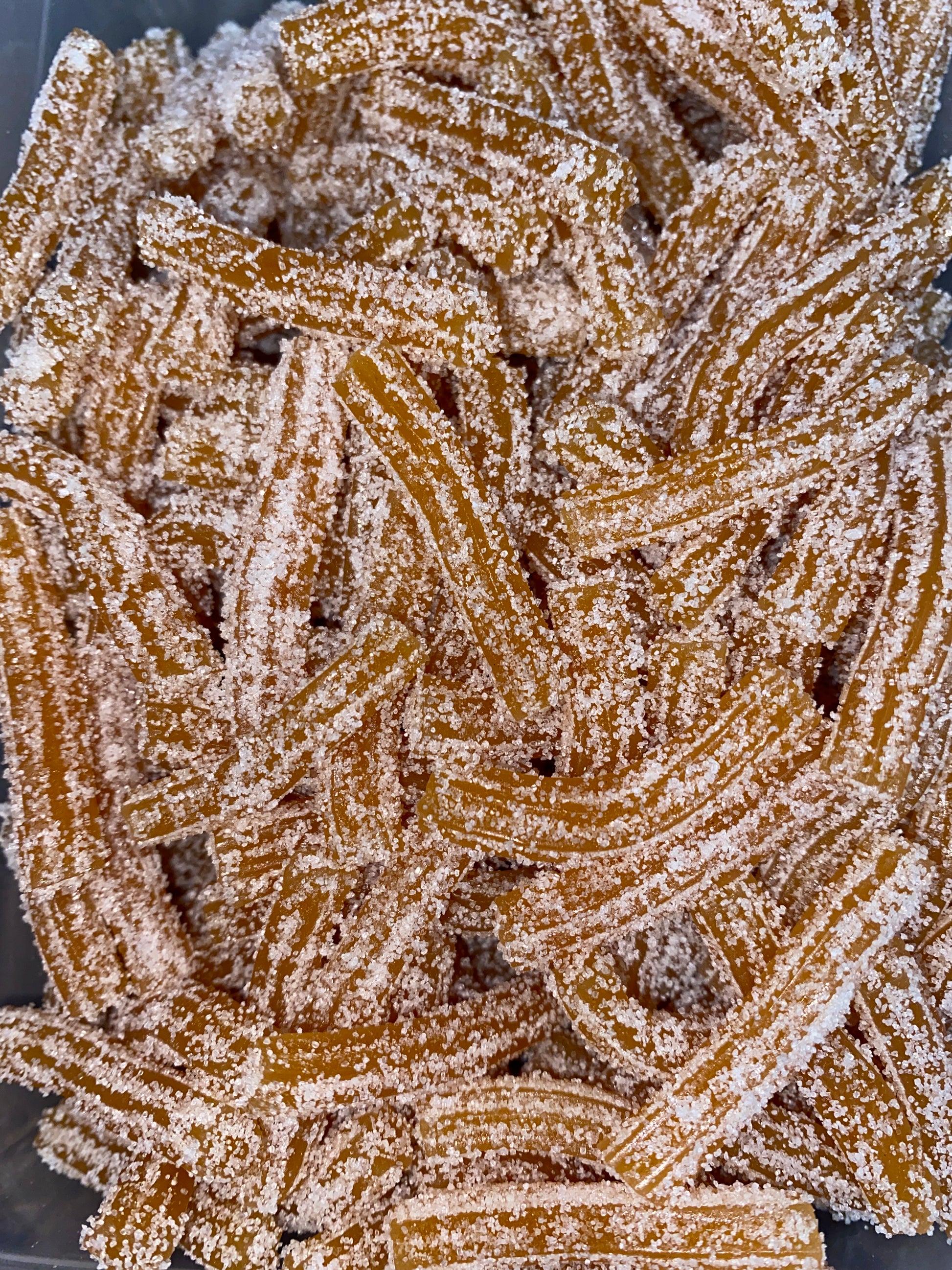 Ingrédients : Sucre, sirop de glucose fructose, farine de blé, eau acidifiant, E330 E296 Graisse végétales (coco), correcteur d’acidité E350, émulsifiant E471 arômes, conservateur E202 colorants.
