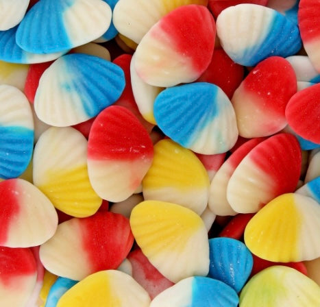 Ingrédients : Sucre au sirop de glucose, gélatine de bœuf acidifiant E270, protéines du pois, arôme artificiel agent d’enrobage huile végétale (palme) E901, E903. Colorants : E163, E129, E100, E160a, E133.